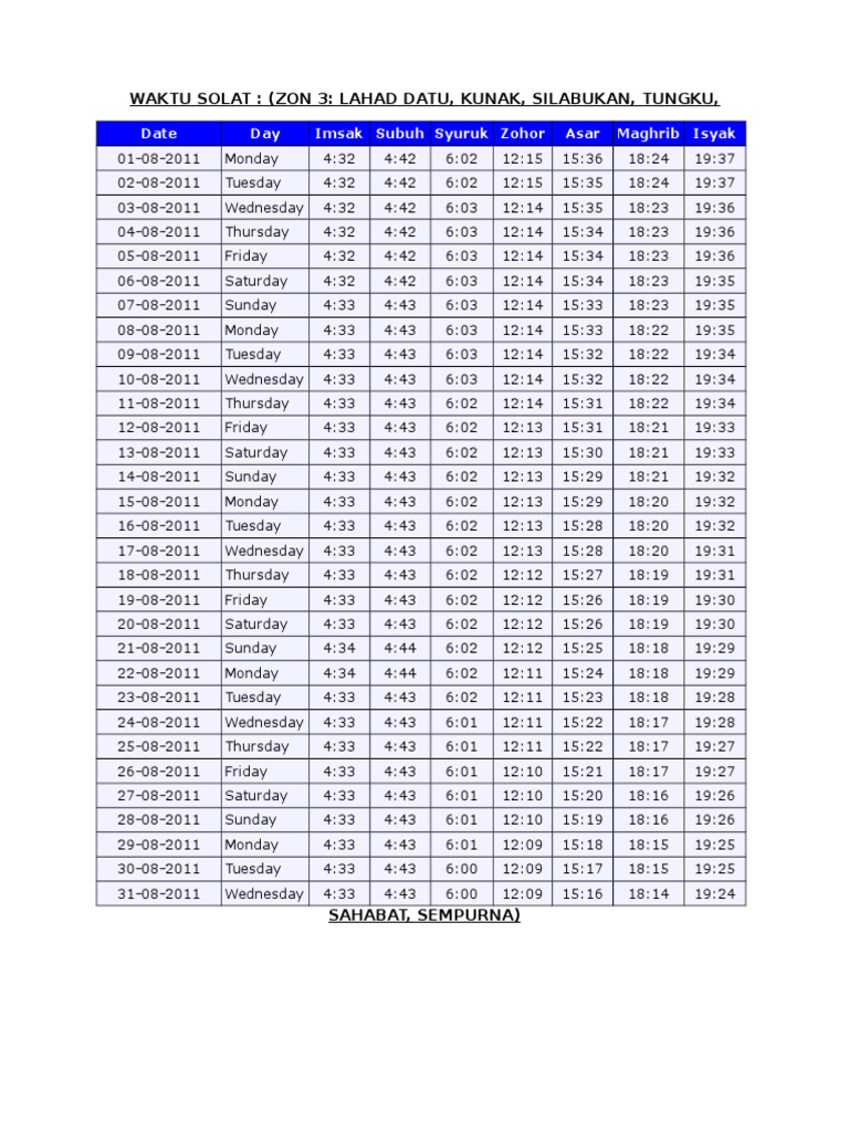 Jadual Waktu Solat 1434 Zon 3 Pdf