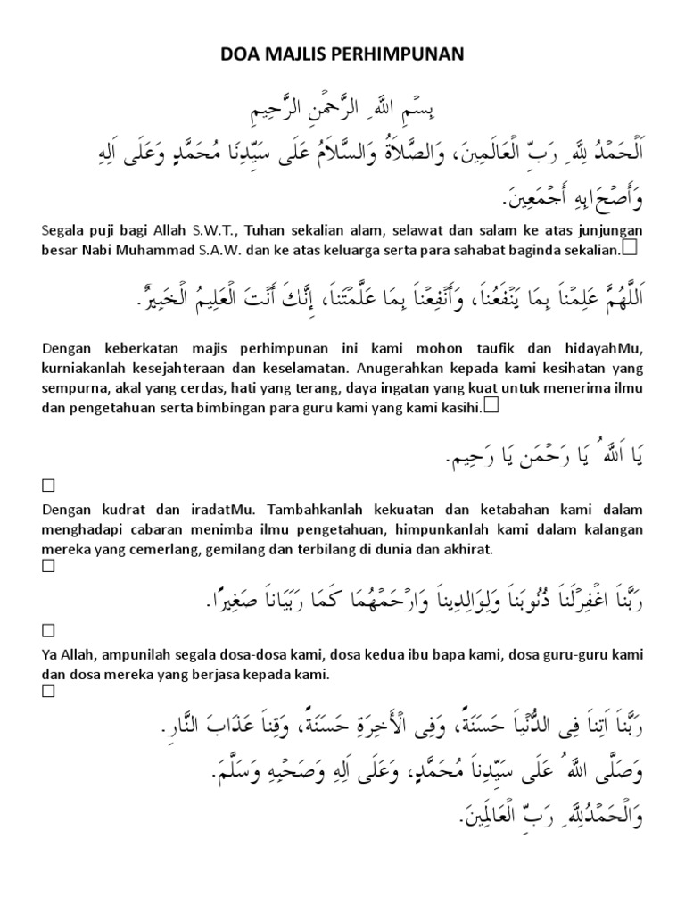 1 Bacaan Doa Majlis Dalam Bahasa Melayu. For example during an assembly for a study camp the prayer might be something like Please enlighten us and make it easier for us to learn things and may what we learn benefit us and the ummah. 6 Bacaan Doa Majlis Solat Hajat.